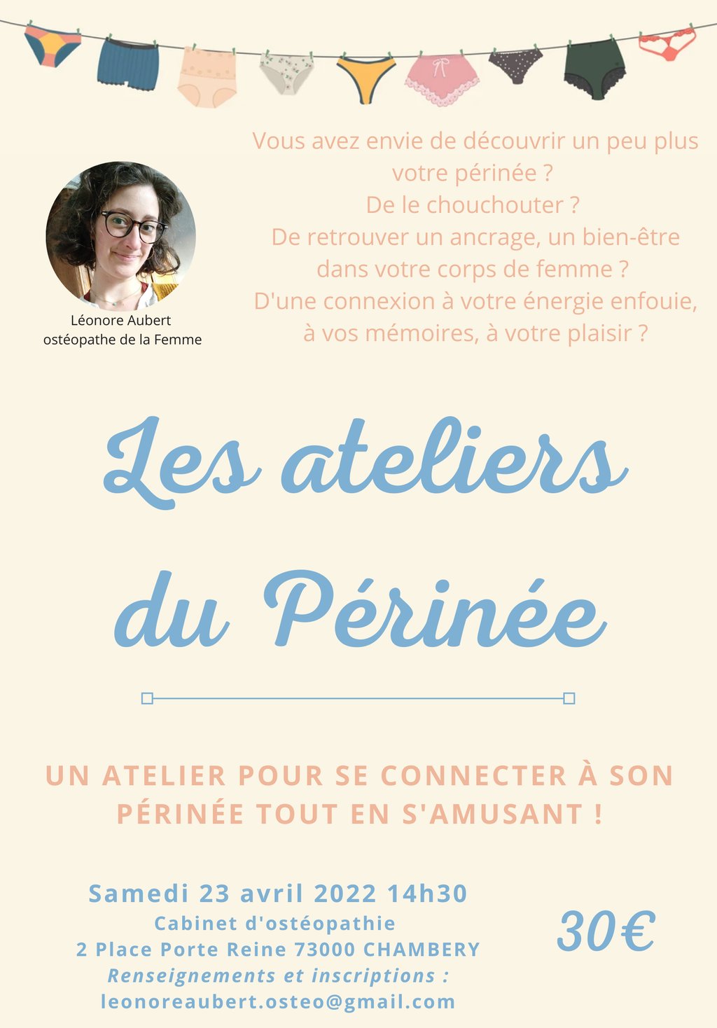Les ateliers du périnée à Chambéry. Pour se connecter à son périnée tout en s'amusant !
